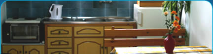 Our studios are about 29 m2. Each studio has has one large double-bed-1.80m width or twin beds, kitchenette fully equipped for self-catering (with two-ring hobs, fridge-freezer, electric kettle, toaster and cooking utensils), small table, satellite TV LCD-Plasma, safe deposit box, one bathroom with shower, sofa-bed in the kitchenette that can accommodate an extra person (pull-out bed), if required. The studios have private bathrooms and patios with tables and chairs.